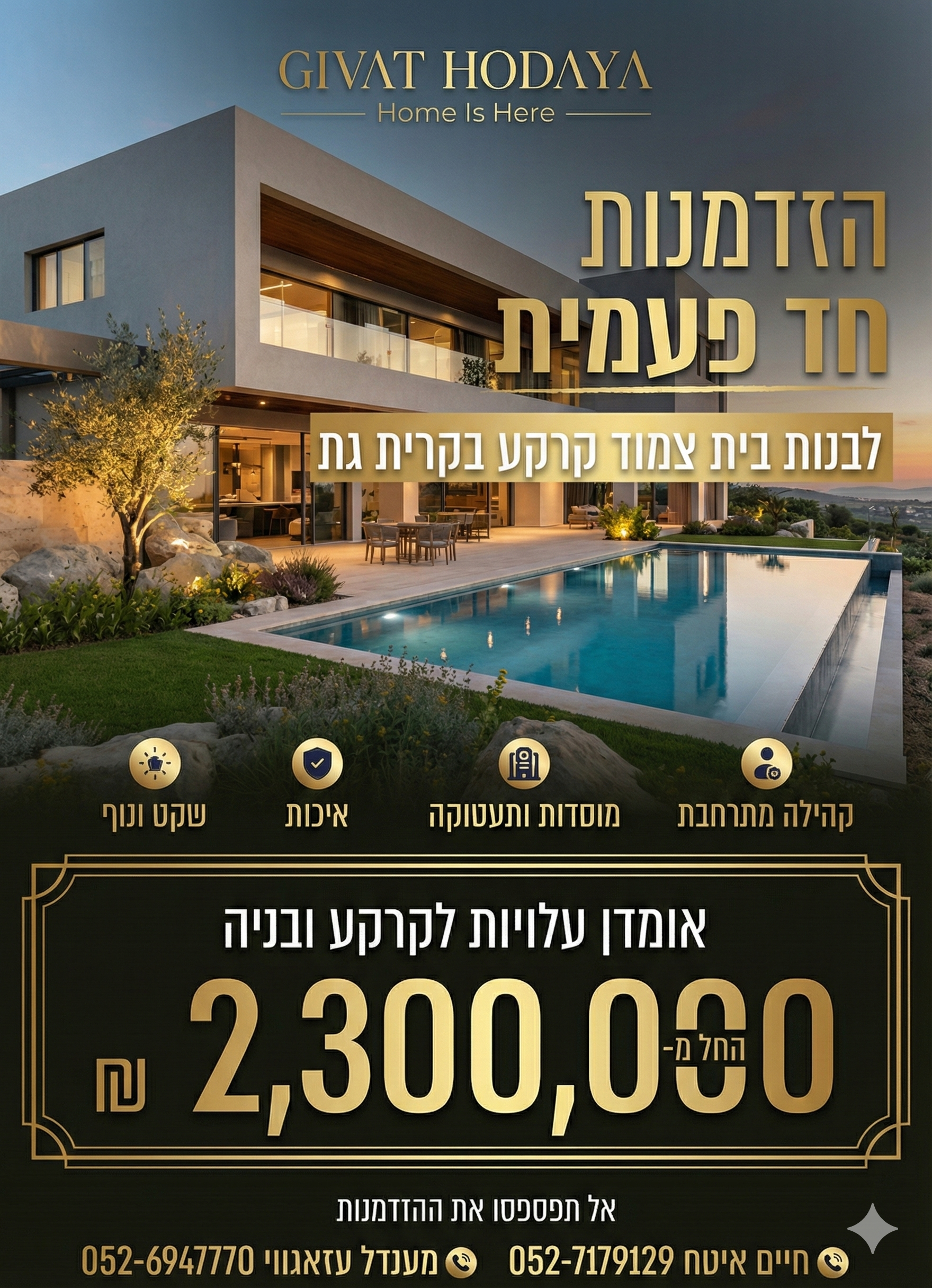 גבעת הודיה מציעה כאן שילוב נדיר: ביטחון פיננסי, חיסכון משמעותי, ליווי מקצועי, ושקיפות מלאה – בלי לפגוע בשגרת החיים של המשפחות.